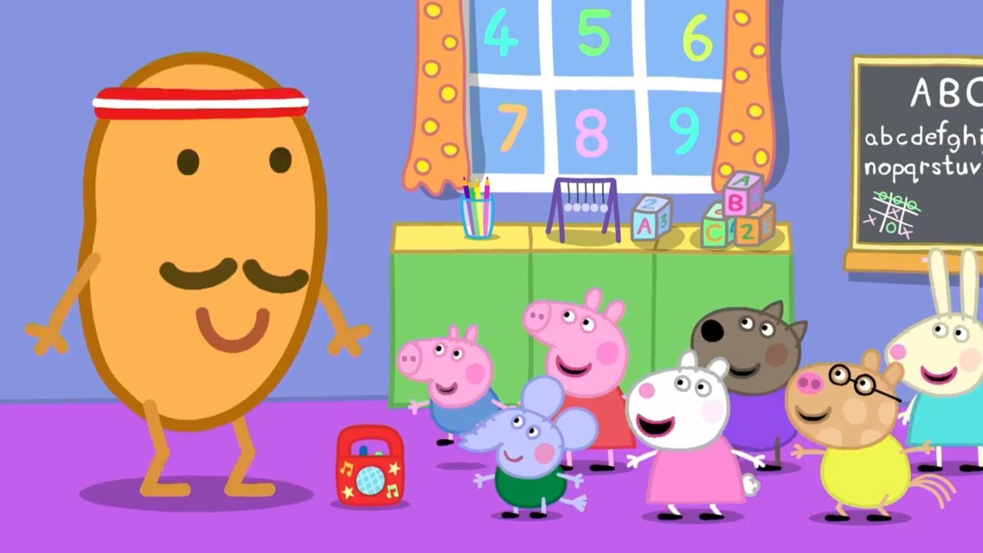 In der Spielgruppe haben Peppa und ihre Freundinnen und Freunde heute einen besonderen Gast: Mister Kartoffel kommt, um den Kindern zu erklären, wie man fit und gesund bleibt. Nach Tipps zur Ernährung und Körperhygiene macht er mit ihnen ein "Kiddie-Training". Die Kinder hüpfen, laufen auf der Stelle, machen Dehnübungen und Hampelmänner.