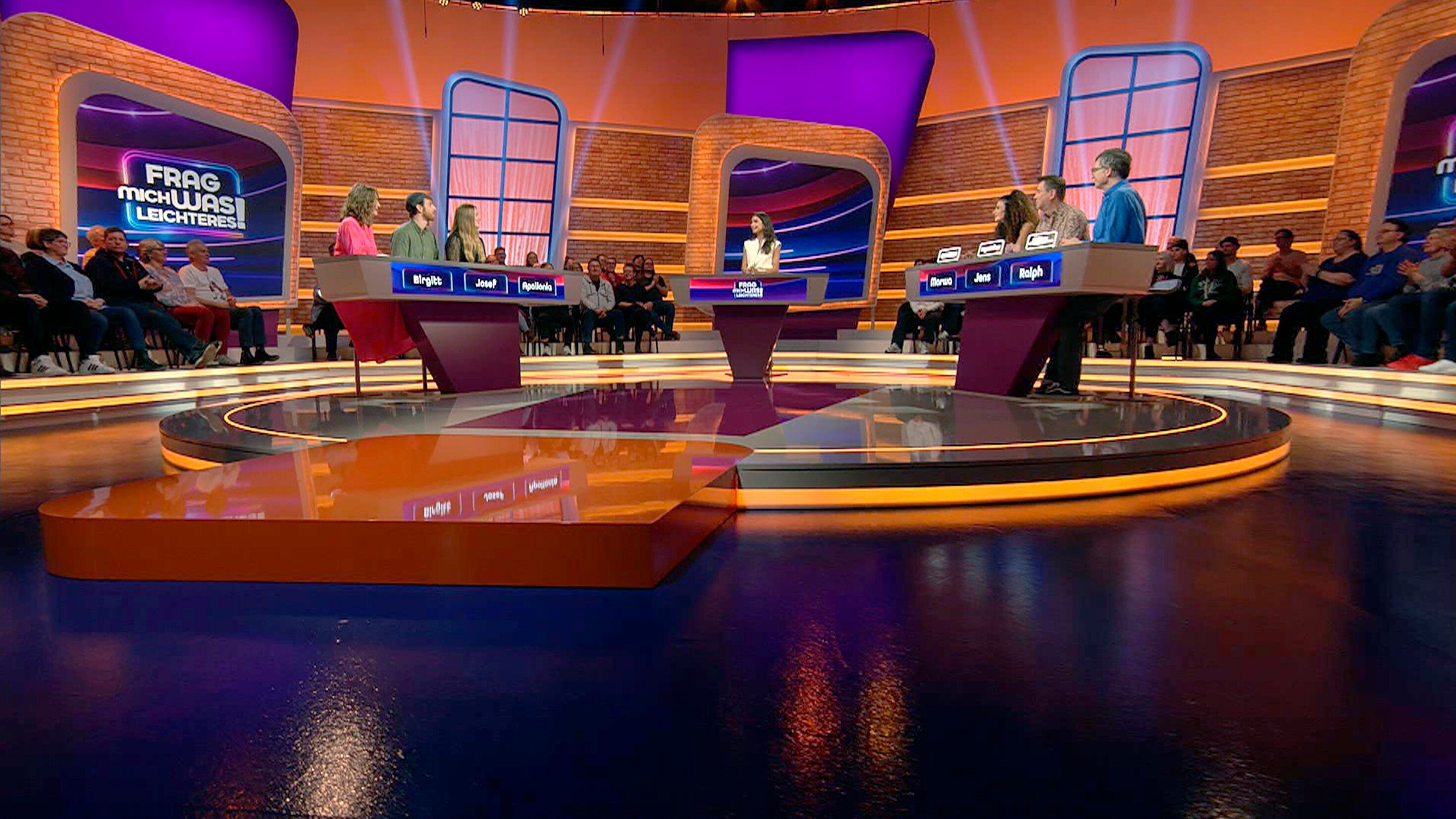 Wie wäre es, wenn ein Quiz einfach mal mit den schweren Fragen beginnt und dann leichter wird? Das ist die Grundidee der neuen Wissens- und Mitrate-Show "Frag mich was Leichteres!", präsentiert von der Sportjournalistin und "Sportschau"-Moderatorin Lea Wagner. In jeder Folge spielen zwei Teams gegeneinander, deren Alltags- und Allgemeinwissen auf die Probe gestellt wird. Um zu gewinnen, kommt es aber auch auf gute Menschenkenntnis an, auf die Fähigkeit, die Gegenspieler richtig einzuschätzen. In der Show fordert ein Team aus drei Zuschauer-Kandidaten ein prominentes Experten-Trio heraus, das zum festen "Inventar" der Sendung gehört. Die Kandidaten sind mal Familienmitglieder oder beste Freundinnen, gute Kolleginnen und Kollegen, alte Klassenkameraden oder Menschen, die miteinander Theater spielen. Zur Experten-Familie gehören Ralph Caspers, Jens Riewa und Marwa Eldessouky.