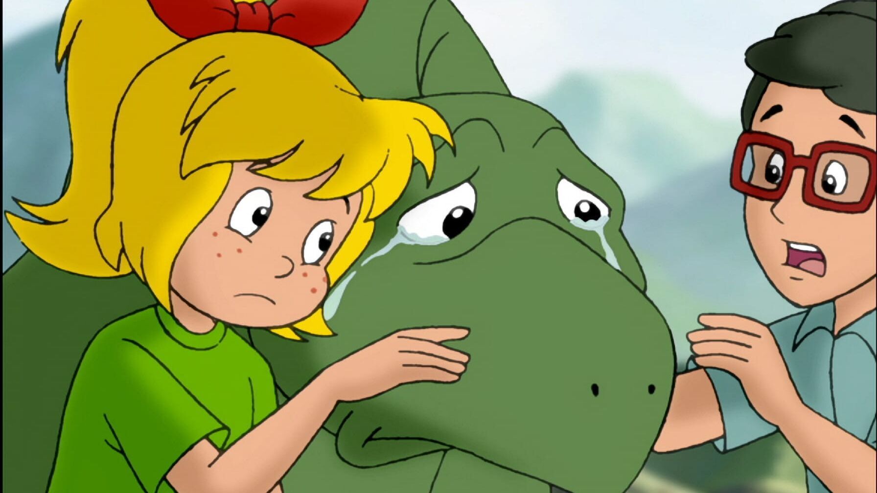 Bibi und Florian reisen in die Dinosaurierzeit. Mit dabei ist Dino, ein junger Saurier, den Bibi einst aus einem Dinosaurier-Ei gehext hatte. Ob sie seine Mutter finden? In der Dinozeit lauern jede Menge Gefahren. Der riesige, angriffslustige Tyrannosaurus Rex kreuzt ihren Weg, und ein Flugsaurier schnappt sie zu einer unfreiwilligen Luftreise. Unsanft landen sie in einer Höhle und stoßen dort sogar auf eine Verwandte von Bibi. Sie treffen auf Mornia, die Urmutter aller Hexen. Sie hilft Bibi und Florian, Dinos Mutter zu finden. Doch der Zusammenführung von Sauriermutter und Kind kommt ein Erdbeben zuvor. Ein tiefer Spalt klafft danach zwischen den beiden. Bibi und Mornia haben eine Idee.